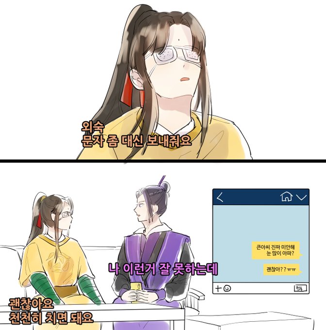 311 651 ⚠️4권 약스포 주의⚠️ 연성교환으로 그린 사금 날조만화,, 원래 주제는 고백하려고 사추 따라다니는 금릉이었는데 걍 재미없는 개그만화 돼버렸다 #마도조사 #MDZS #魔道祖师 #사추금릉 20/05/01 20:49