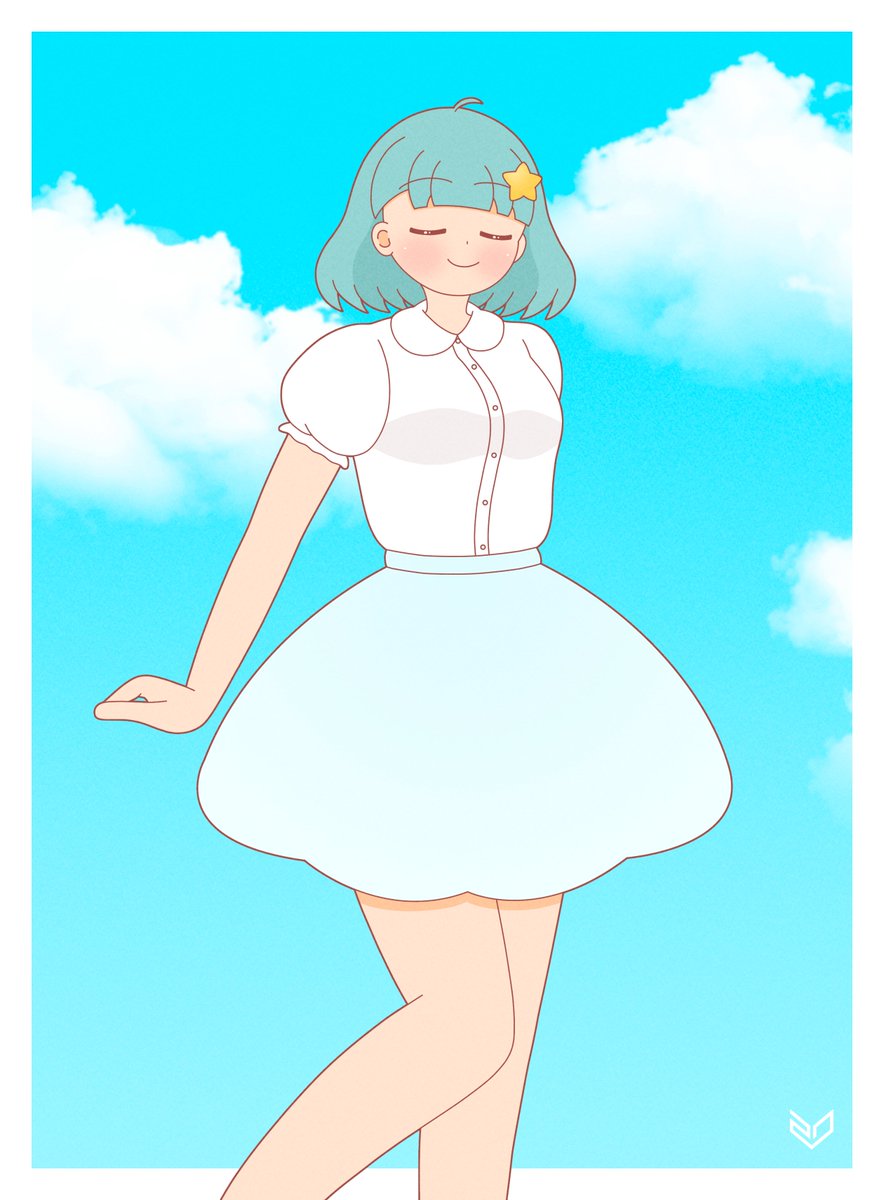 #竜崎実羽 #絵描きさんと繋がりたい #うちの子描いてみませんかキャンペーン 最近暑くなってきたので、とりまスク水なみーちゃんを🩱 アンケートの結果、着せてもいいとのご意見をいただいたので、上にふりふりなTシャツも合わせてみました。 実羽「いっしょに海であそびましょ♪」