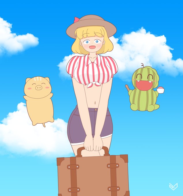#よその子 #絵描きさんと繋がりたい 親愛なる加藤さんち【@tokkurimokiru】のシャーベットちゃん、すいかどん、うりの助のトリオを描かせていただきました!🍧🍉🐗✨ だいぶ季節をフライングしちゃってる気がしますが、たまに暖かいのを通り越して暑いから大丈夫だ!(笑)