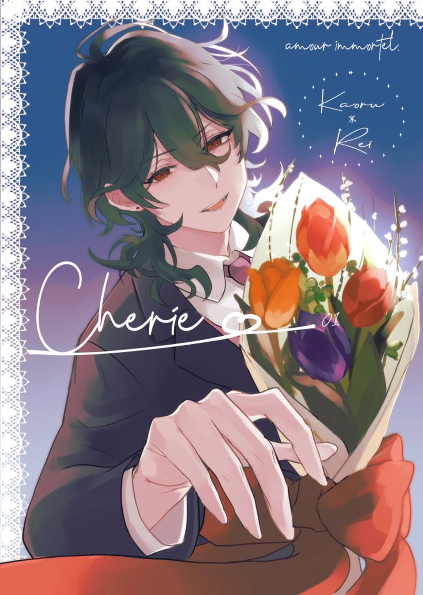 30 147 【7/23新刊サンプル①】 恋人としての二人の一年がテーマの薫零イラスト本です🌻春夏編。日常だったりお仕事中だったり。(少し日常関係ない絵もあります) 星に願いを。day1 風薫る午前零時 『東2 ニ20b』サークル:NikorI で頒布します☀️ A5/32P/フルカラー/全年齢/ 会場価格¥500 22/07/15 19:53