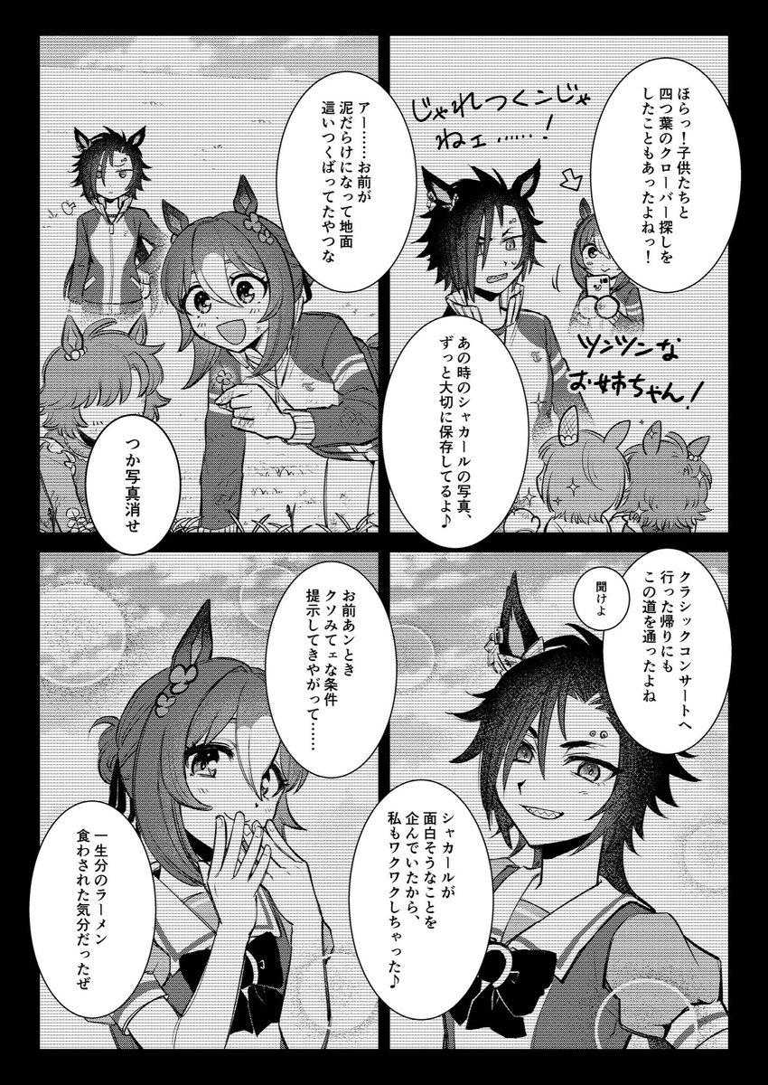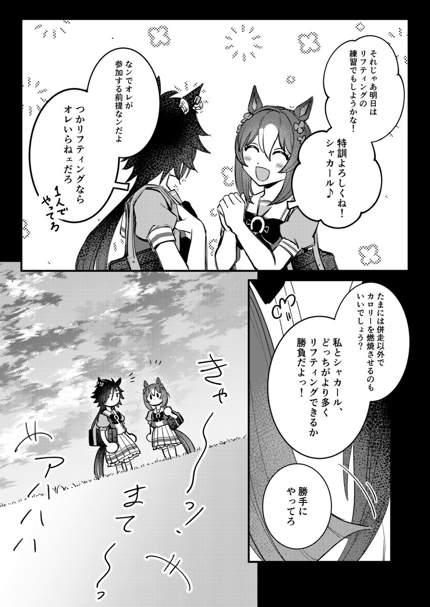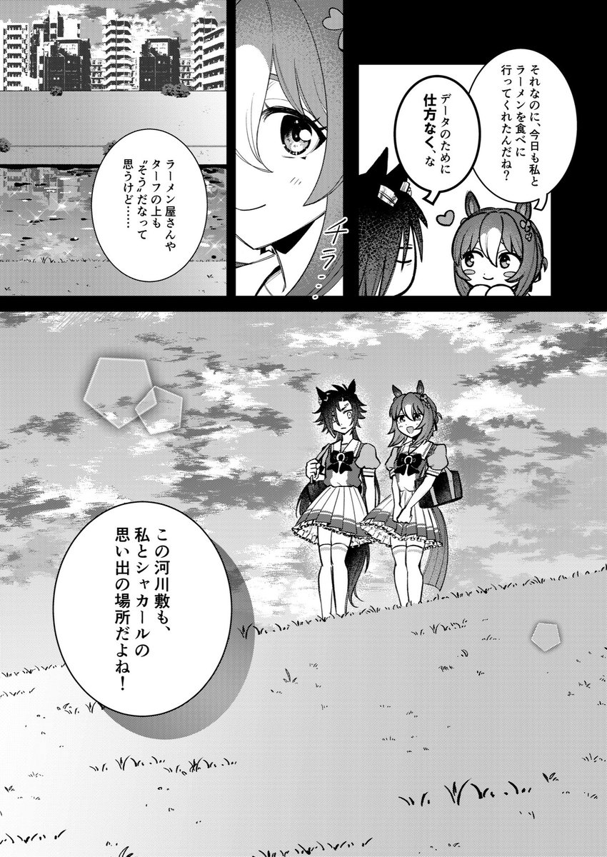 12 36 【5/28プリステ30R 新刊サンプル(1/2)】 「思い出語り」 B5/28P/300円(イベント頒布価格) シャカファイちゃんが河川敷で2人の思い出を語り合う話です! ※以下の要素が含まれます ・育成イベ、サポカイベなどのネタバレ ・CP要素 ・トレセン学園卒業後の描写 23/05/23 22:54