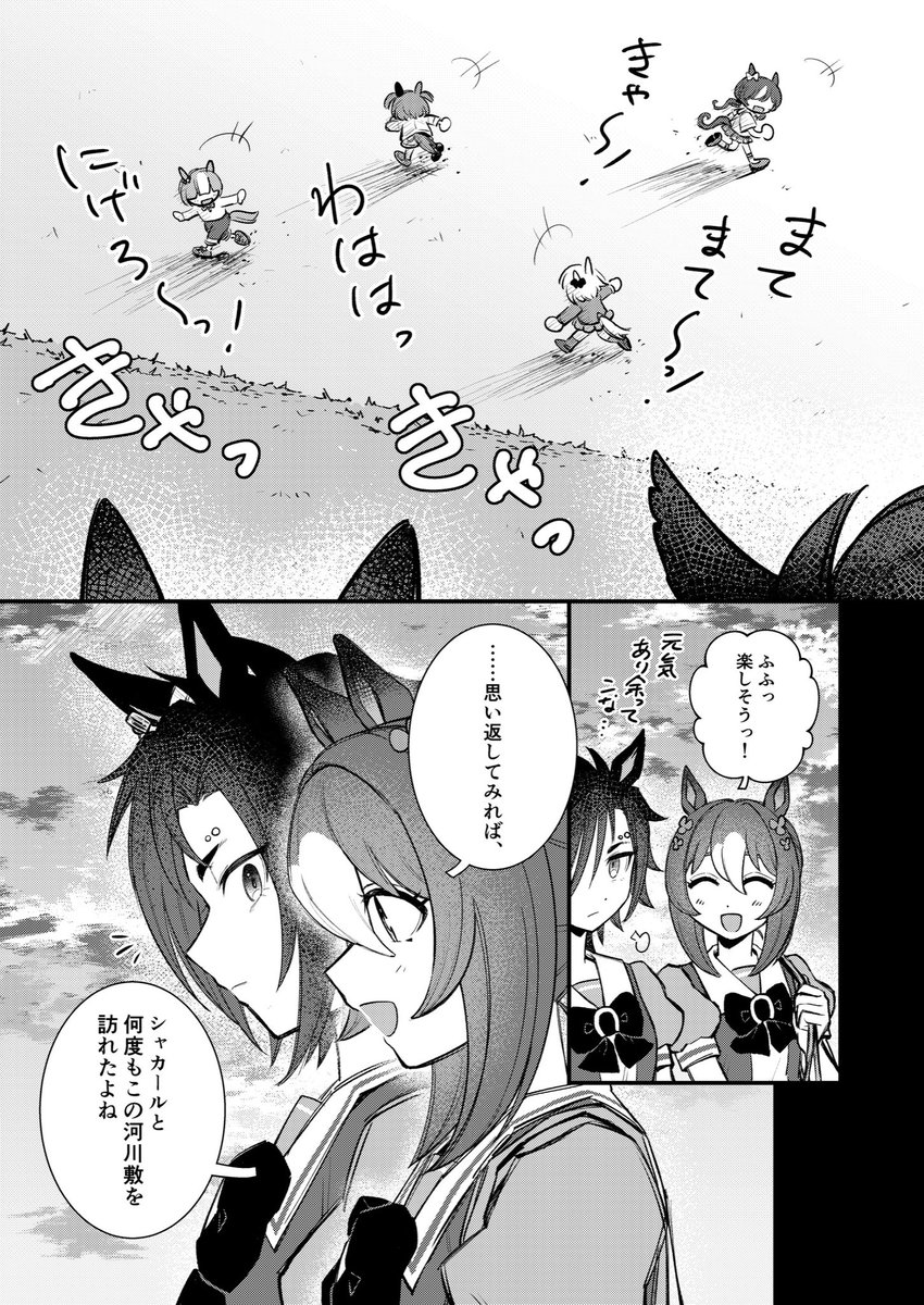 【5/28プリステ30R 新刊サンプル(1/2)】 「思い出語り」 B5/28P/300円(イベント頒布価格) シャカファイちゃんが河川敷で2人の思い出を語り合う話です! ※以下の要素が含まれます ・育成イベ、サポカイベなどのネタバレ ・CP要素 ・トレセン学園卒業後の描写