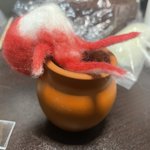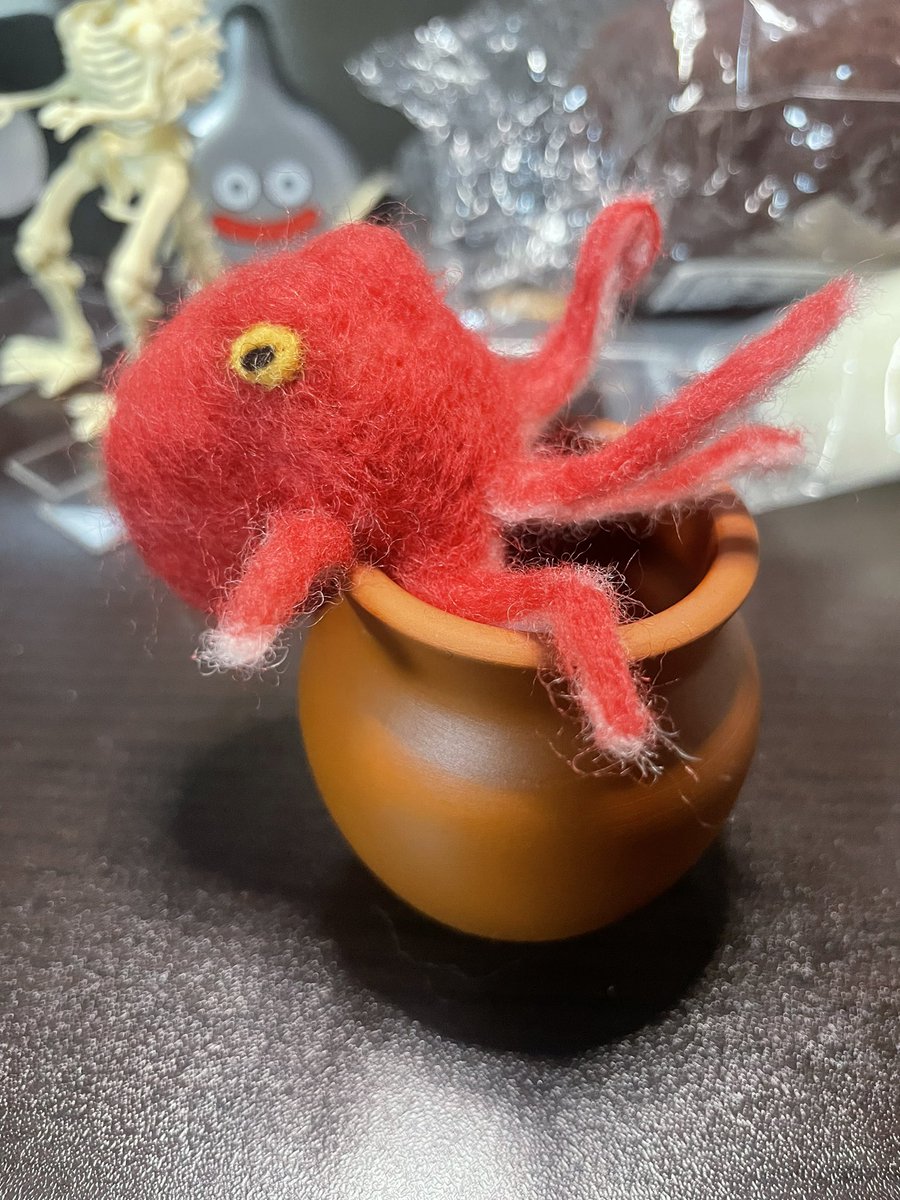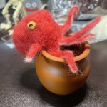 0 1 はい、作品NO.16のたこさんです 本当は後頭部に顔つけてイカルゴにもしてやろうかと思いましたがやめました😚 1番気に入ってるのは目です🙄 #羊毛フェルト 22/09/06 23:33