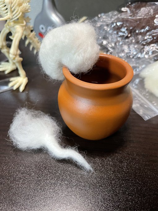次の工程が時間を要するのでまた一旦おやすみ! そろそろオリジナルのシリーズみたいなの作りたいなぁ🤨 #羊毛フェルト