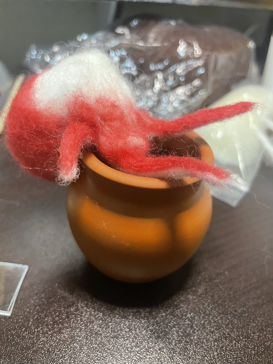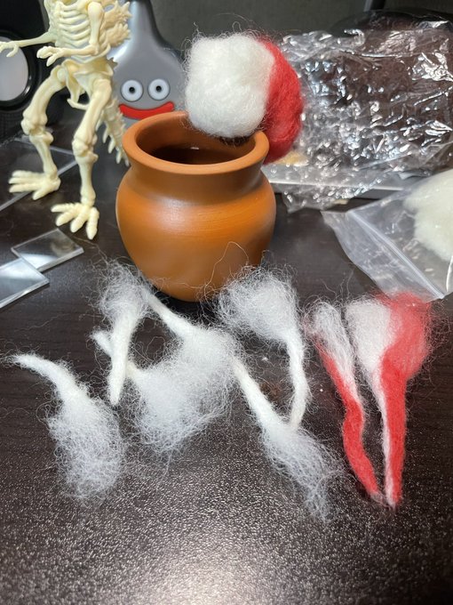 戻ってきましたよー こいつもそろそろ終わりますね 次何作ろっかなー🧐 #羊毛フェルト