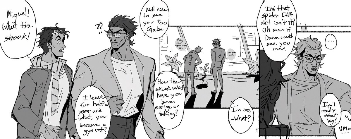 When your little bro comes back from a trip and you immediately get chewed out or idk I just love how they are in the comic and think it would be hilariously funny if Gabriel was in the movie😭 #MiguelOHara