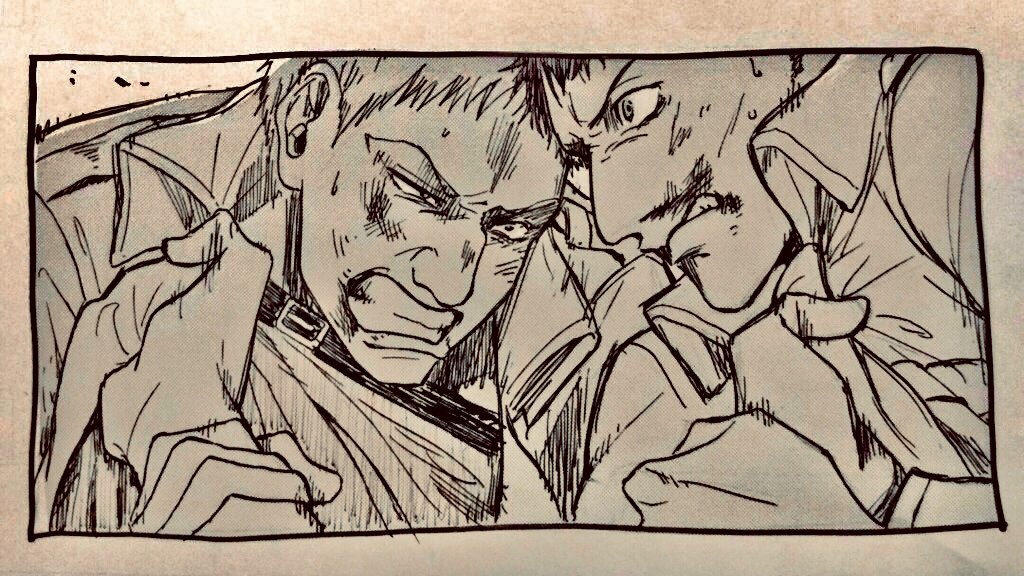 ペンの練習その41 訓練(?) ライナーと渡り合えるのはベルトルト位だと思われます、104期の中では。 ミカサは論外😃 #進撃の巨人