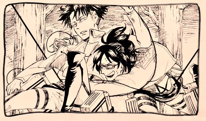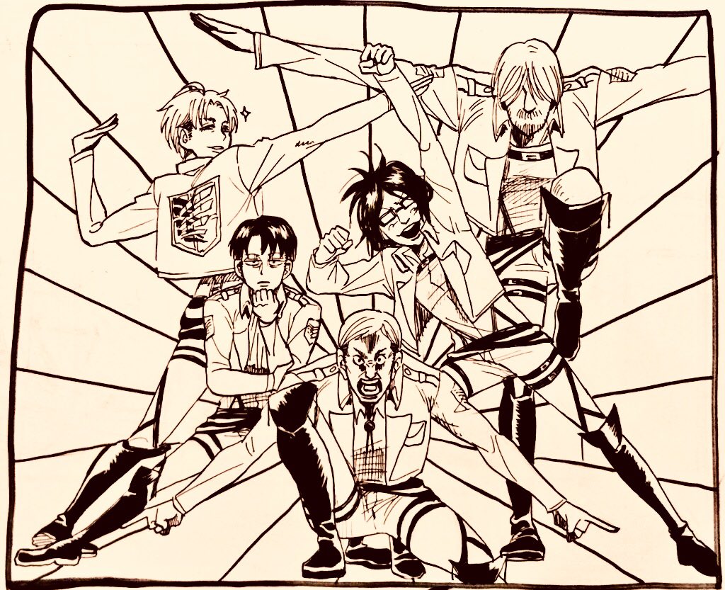 ペンの練習その89 エルヴィン特戦隊 めっさ仲良し😃🍒😃 #進撃の巨人