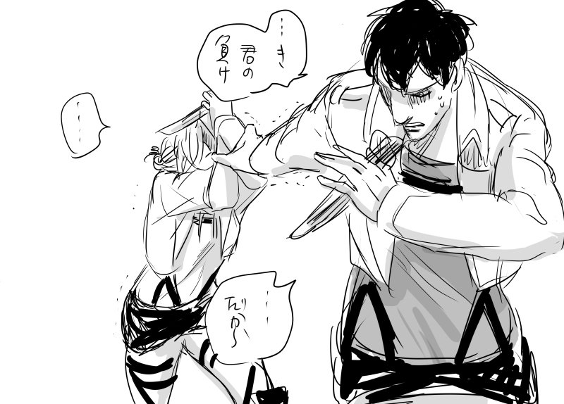 進撃○○しないと出られない部屋のちょっとした裏側です(^^) このタグ使ってみたかっただけです。 ak #進撃の巨人 #進撃しないと部屋 #このタグを見た人はラフ画とその完成絵を見せる