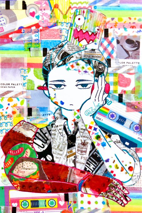 ドンキちゃんとクボさんとモーゼスさんとベスパくんと… #今月描いた絵を晒そう #アナログ #マスキングテープ #projectmoon #LimbusCompany #leviathan #The_Distortion_Detective #ねじれ探偵