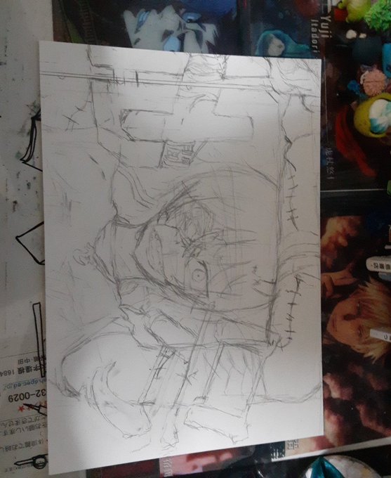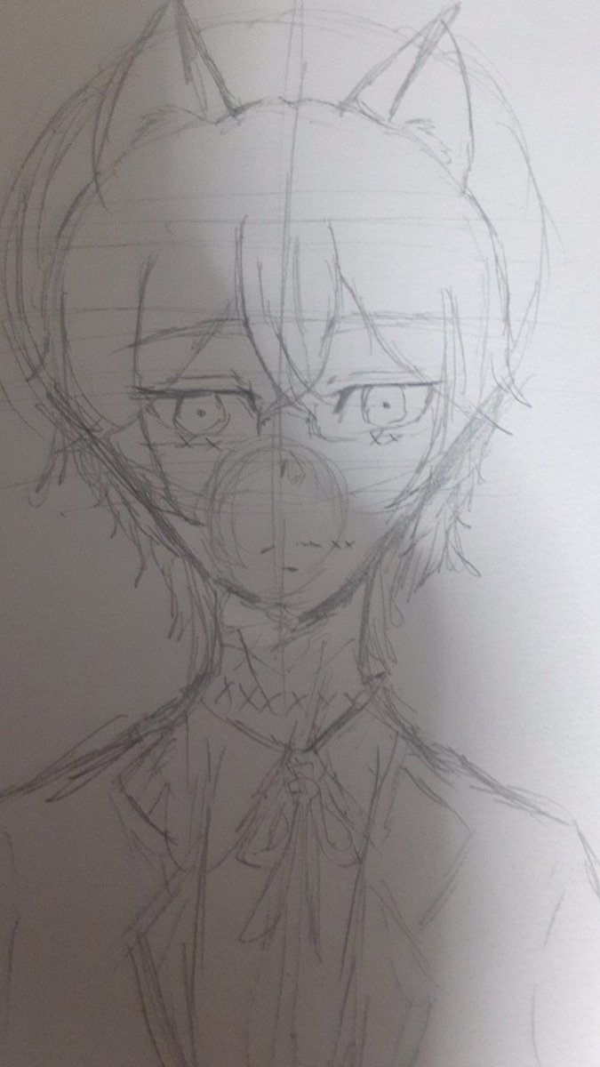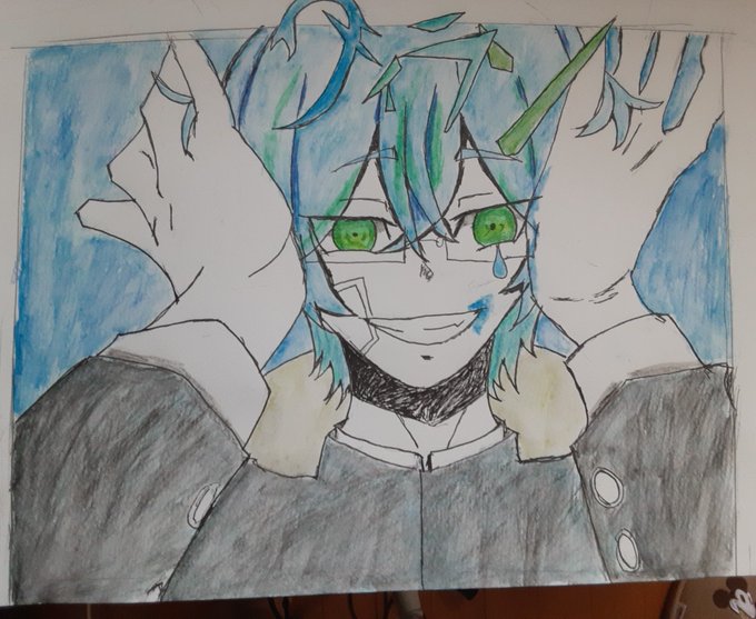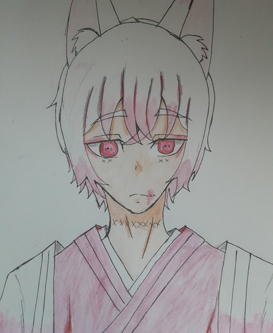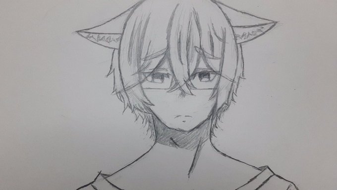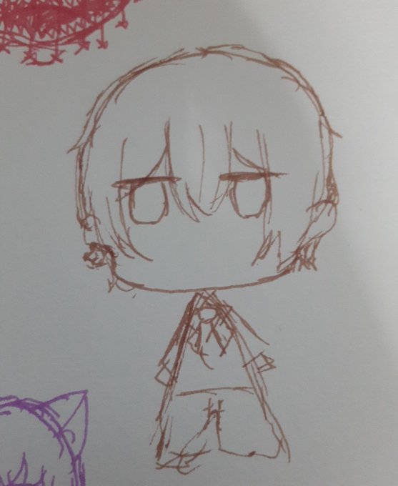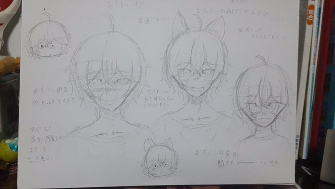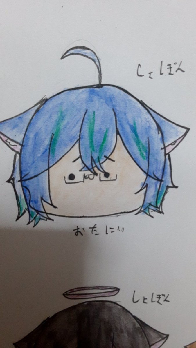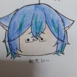 #オタク工房、 #イラストやの画像だけで何の作品か分かったらRT 、 #イラスト練習中 、配信で惚れ直したセリフ、しょぼん( ´. .̫ . `)💧してるおたにぃ!次はかっこいいバージョン(・ω・三・ω・)フンフン