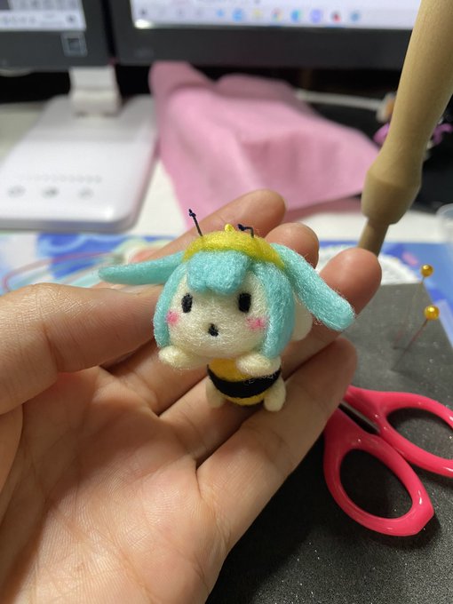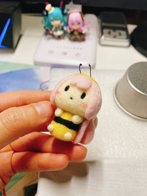 12 43 ちっちゃいおすわりルカバチさん1匹増えました🐝✨️ #羊毛フェルト #巡音ルカ 23/01/27 22:26