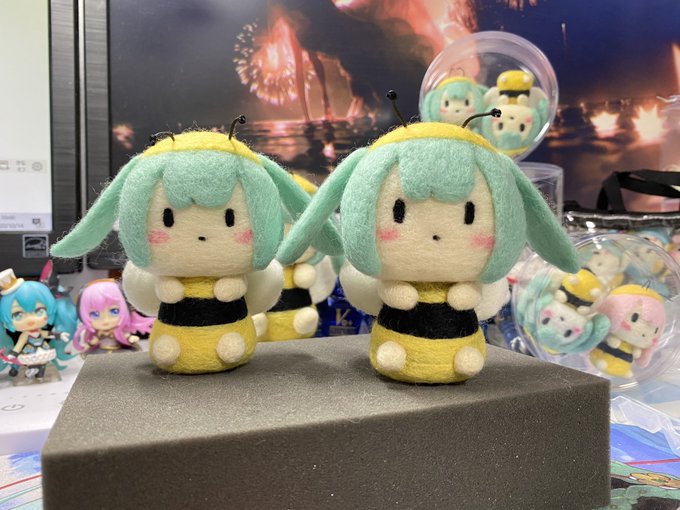 クソデカおすわりミクバチさん2匹できました🐝✨️🐝✨️ どうやって頒布するか悩ましい… #羊毛フェルト