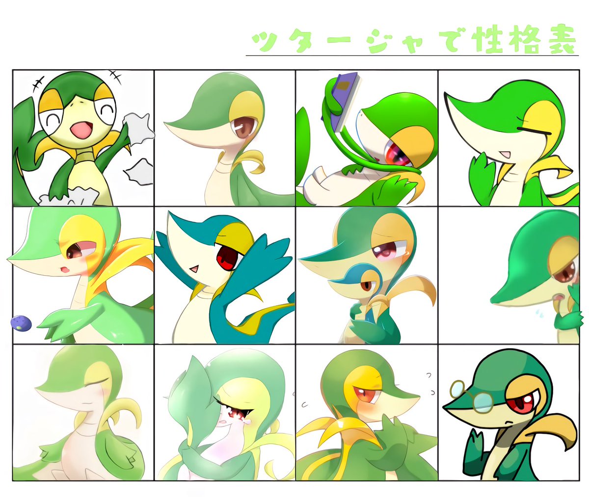 #ツタージャで性格表 るいちゃの企画に参加させて頂きましたッ おだやかなツタージャです 怒りません…? 表情豊かなツタージャ可愛いわね