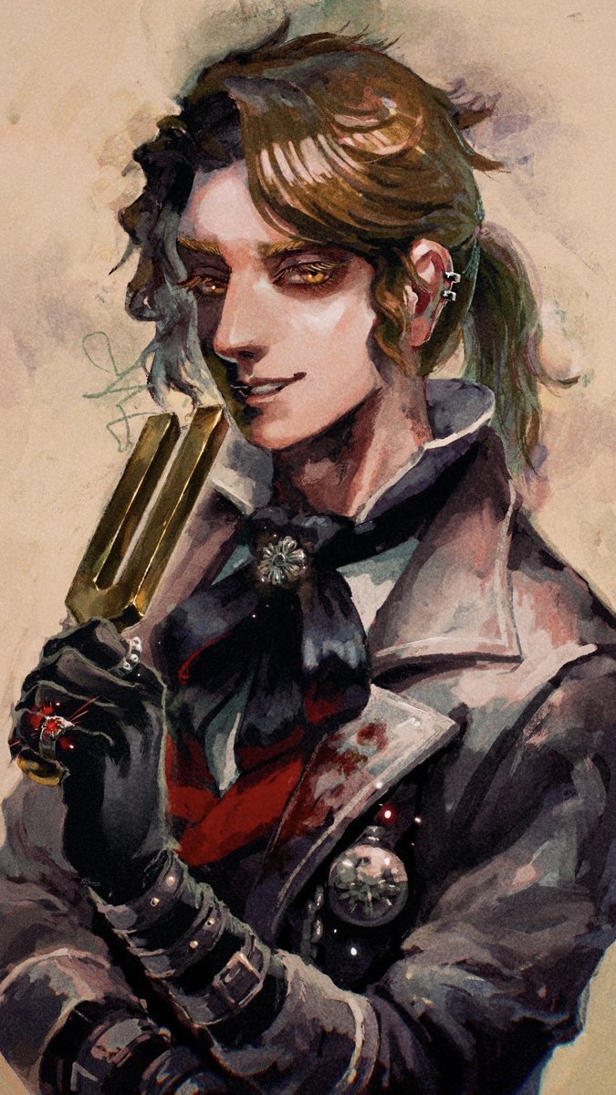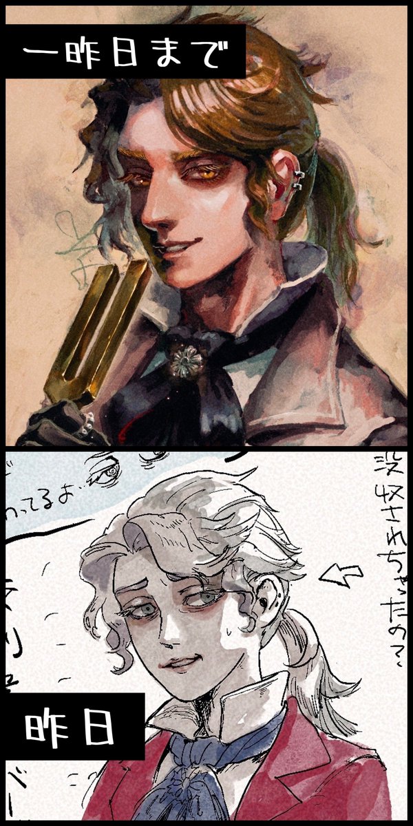 そういえば 『夢と現の狭間にて』(注射を打たれた時に見える現実と幻覚の混ざった光景)をイラコンに出しています!よろちく pixiv.net/artworks/98260… 彼は光と闇を超越し、橋を渡す。 その眼差しは、慈愛に満ちていた。 #IdentityV4周年イラコンFA #identityVイラスト