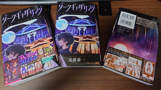 『#ダークギャザリング』13巻の献本が届きました。発売日は8月4日で装丁は写真の様になっておりますので目印にしていただければと思います。同時発売のジャンプSQ本誌の最新話、毎週のアニメと一緒によろしくお願いします…!