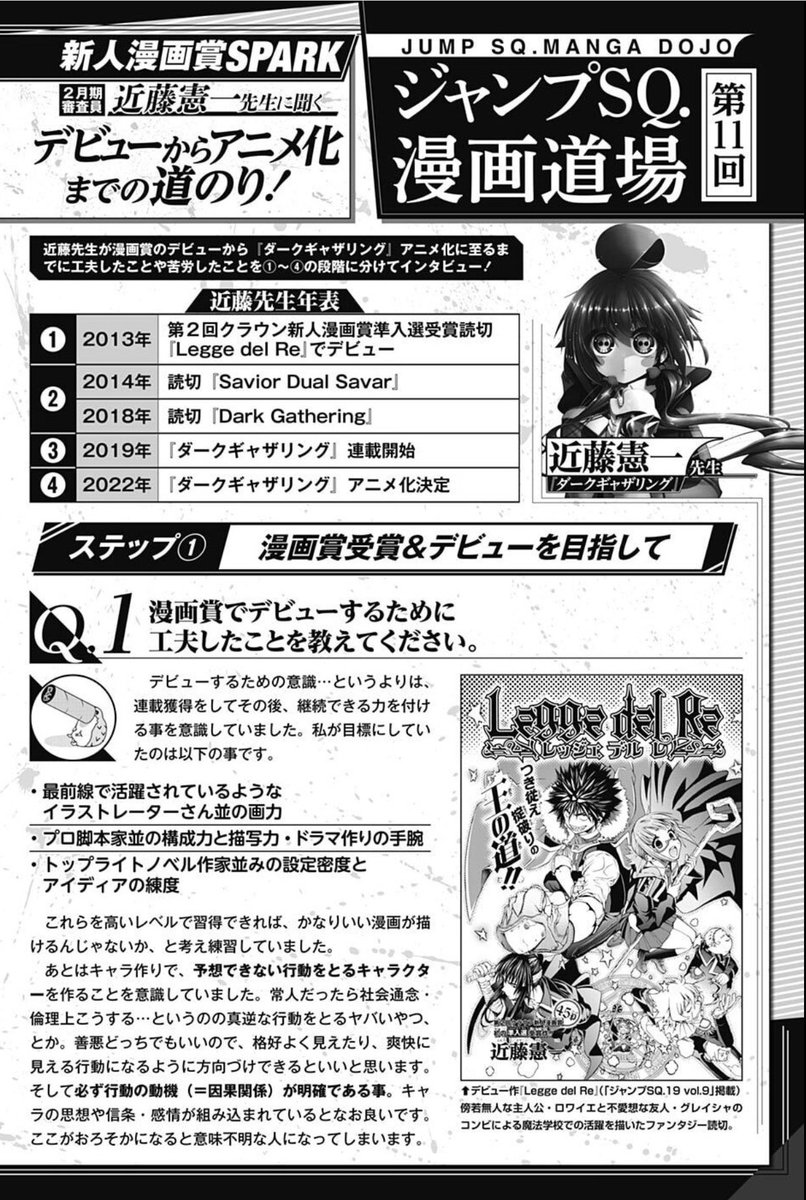 本日発売のジャンプSQ.7月号に『#ダークギャザリング』50話を掲載していただいております。 ついに50話…! おかげさまで50話到達…! また、なんとアニメ特集で夜宵ちゃんと螢多朗君の声優さんである #篠原侑さん と #島﨑信長さん のコメンタリーも載ってます! 漫画共々よろしくお願いいたします!
