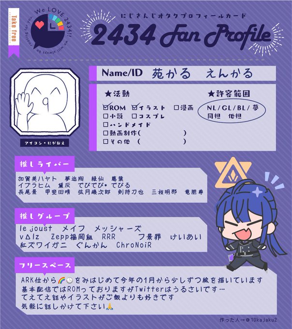 3 18 #にじさんじ絵描きさんと繋がりたい #にじさんじ好きな人と繋がりたい 🌈🕒箱推しの成人です 🏢と☯️のイラストが多めです RT優先で❤️も巡回します〜! 無言フォローでお迎えします! 21/02/22 03:16