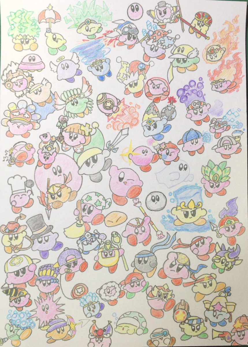 30周年おめでとうカービィ! 今までのコピー能力を描いたよ(派生コピーは除く) これからもよろしくね! #星のカービィ30周年 #カービィのハッピーバースデー #Happy30thBirthdayKirby
