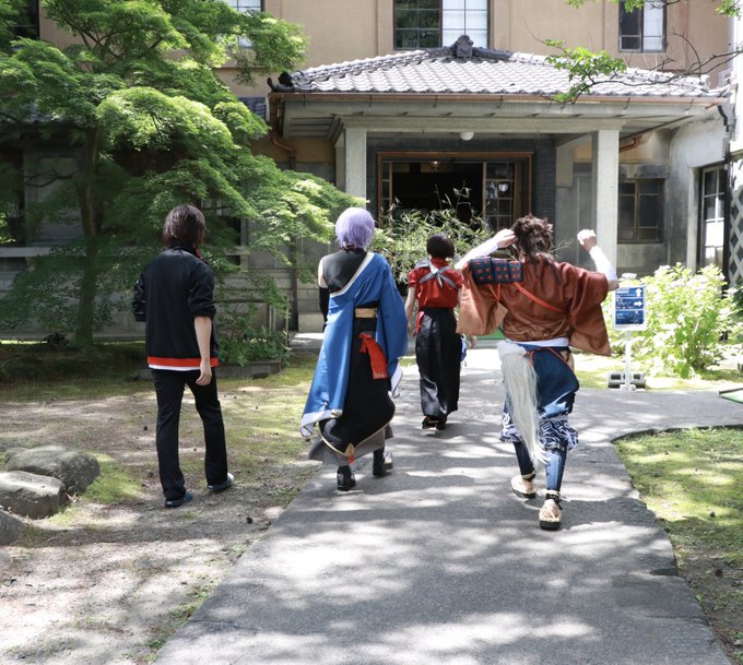 #顔の見えないコス写真 竹取翁🌙と刀達の七夕飾り🎋 大倶利伽羅(内番):じゃこ(@jyacoco_luck ) 歌仙:桜餅の助 加州(内番):さちこ(@sacico1129 ) 陸奥守:温さん(@o_n_cos327 ) 三日月:はじめさん(@hajimekamone ) Photo📸やまねこさん(@96yamamoto ) ※当日非常に暑かったので歌仙脱いでます🙏💦