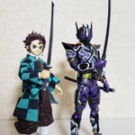 滅亡迅雷を開封 本編視聴後にこの姿を見ると初見とは凄く別物に見える素晴らしい奴 この独特な無機物感が好き そして彼といったら刀 日輪刀っぽいのでわが家の炭ちゃんと記念にパシャり 鬼滅の刃にはいないタイプの拗らせた思想も彼の良いとこ #t_shf #仮面ライダーゼロワン