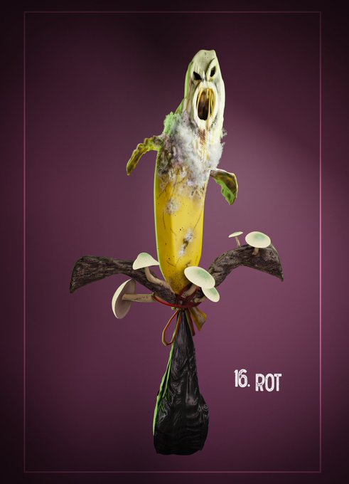 Swordtember 2022 - Day 16: Rot My brain was mush. Here, banana tied to sticks with trash bag. I will have to revisit this one with a different idea. #swordtember #swordtember2022