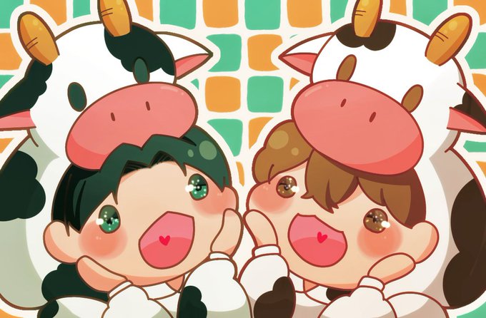 1 1 すきすきみーとぅー! #肉チョモ美術館 #肉チョモ39 動画用に描いたやつの加筆 とっても楽しくて可愛い曲と動画でした🐮🍖🐮🎶 22/12/09 17:34