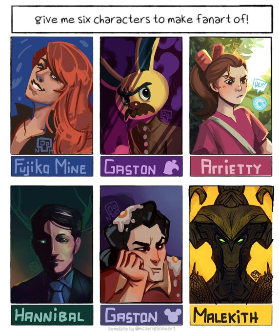 Here’s the six character meme from the stream! Have a lot of fun characters in there. Thank you to everyone who joined, it was an absolute blast joking about Gaston getting egged. 🍳 🍳 🍳 #illustration #drawingmeme #artistsontwitter