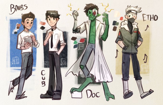In celebration of #HermitcraftSeason9 I’m sketching all the hermits, four at a time! Starting off with some of my favorites: @BdoubleO100 @cubfan135 @docm77 @EthosLab_OFF #Hermitcraftfanart