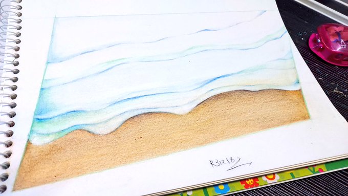 #色鉛筆 #海描いてたはず #紙は破れるもの #芸術同盟 絵っていつの間にか捻じ曲がってたりしますよね