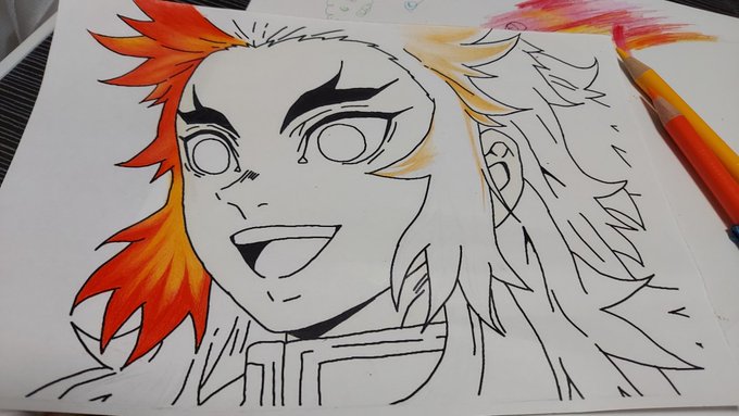 0 9 #気滅の刃 #煉獄杏寿郎 #色鉛筆 #塗り絵 @FxONoelxWS5UzIW 鷹ちゃんの煉獄さん、ごっつええかんじに塗れた!4時間くらいでココ!! 21/12/20 19:33