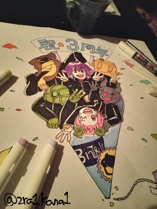 #bintroll三周年記念 #bintrollFA BinTRoLL活動3周年おめでとうございます✨最近はなかなかオンタイムで追えてないけどのんびり嗜ませて貰ってます🍣仲良しチームでどんどん突き進んで行ってください🙌💕 🐶🤖📦😺🐻🐰………🐳