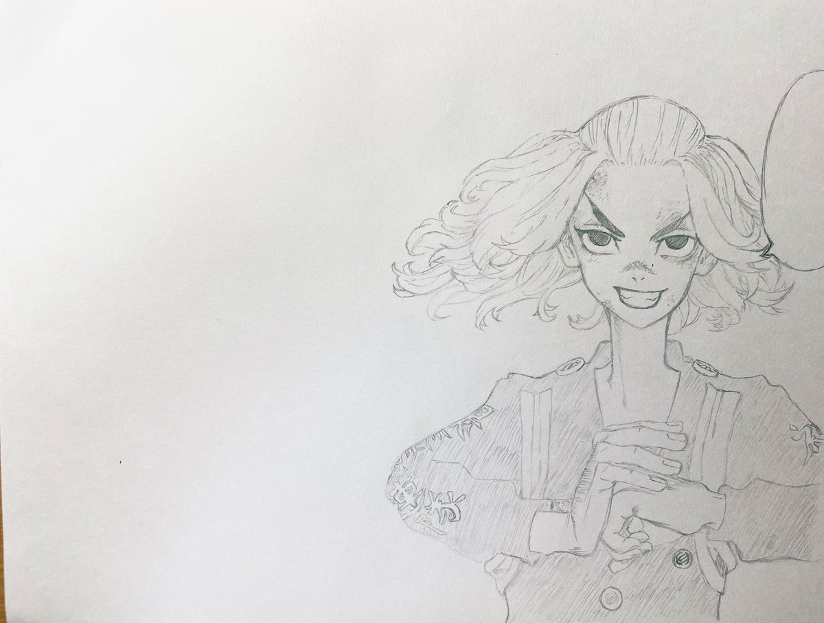 東リべのマイキーを描き始めて2日目! 今日もいい感じ!( *´꒳`*) 文字はサボりで描いてません(´>∀<`)ゝ #東京卍リベンジャーズ #マイキー #東リべ絵描きさんと繋がりたい #イラスト好きな人と繋がりたい #アナログイラスト