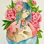 「ポピーと少女と」 昨日で展示が最後でした。 DMで使ったこの絵は、3人が「横向き女の子とポピー」で揃えた作品です。 それぞれ個性が出てわかりやすかったと思います🌷 #花と少女展 #透明水彩 #illustration