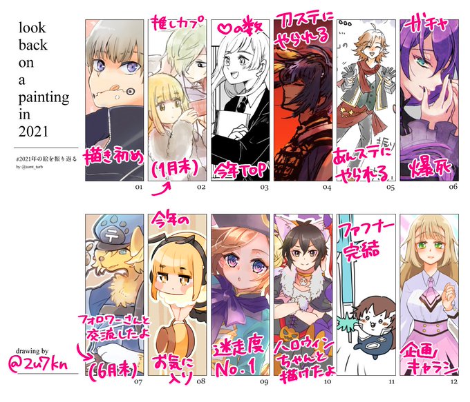 2 7 やるやる詐欺してた1年間の絵まとめやったよ!なんやかんや平均月1~2枚は描いてた感じ #2021年の絵を振り返る 21/12/31 22:06