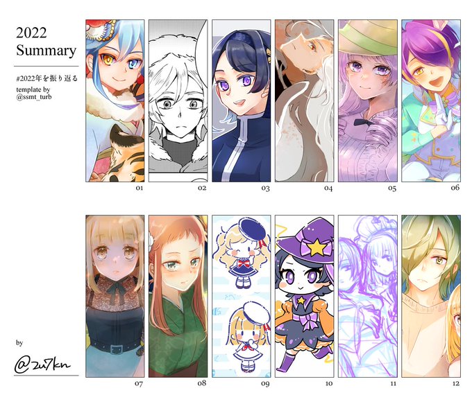 1 1 #2022年の絵を振り返る 年越しちゃったけど… ここ数カ月の失速感が印象に残ってただけで2022年前半は結構描いてたんだな~っという気づき よく頑張りました 23/01/01 02:24