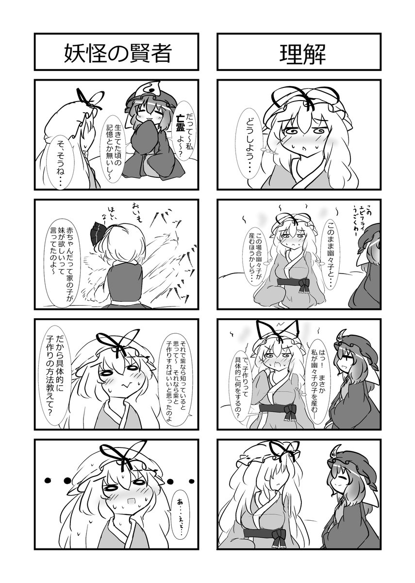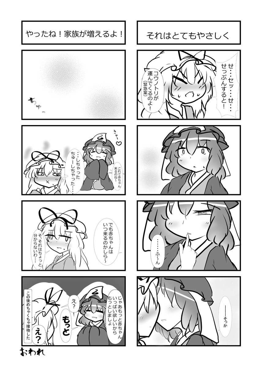 例大祭の新刊サンプル(Twitter版)です 妖夢ちゃんが悩んだり小ゆゆがつまみ食いしたり寝たり捕まったり好き勝手しちゃう四コマ漫画が新刊です。 シールも作りました1シートに小ゆゆが5種類7個で35匹分の小ゆゆのシールですよ、お得 #博麗神社例大祭 #博麗神社秋季例大祭