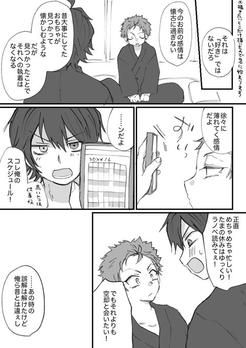 15 53 空却さんお誕生日おめでとうございます~🥳🥳🥳一年前に発行された、二人の思い出がぎゅぎゅっと詰まったいちくうアンソロ(@ichiku19anthol1)に寄稿させて頂いた作品です。自分は初デートを描きました!完売してるようなのでどうぞ~ (4/8) 22/08/21 19:57