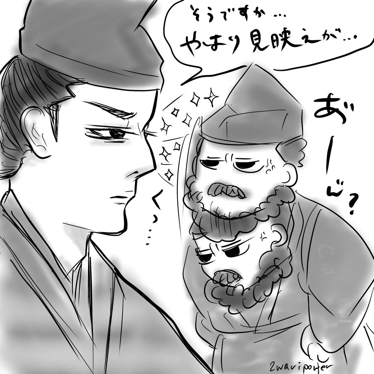 熱烈歓迎に慣れてないのにそれが推しからとなるともう梶原殿とて我慢なりませぬ #鎌倉絵 #殿絵 BARひろつね黄泉の国店シリーズです