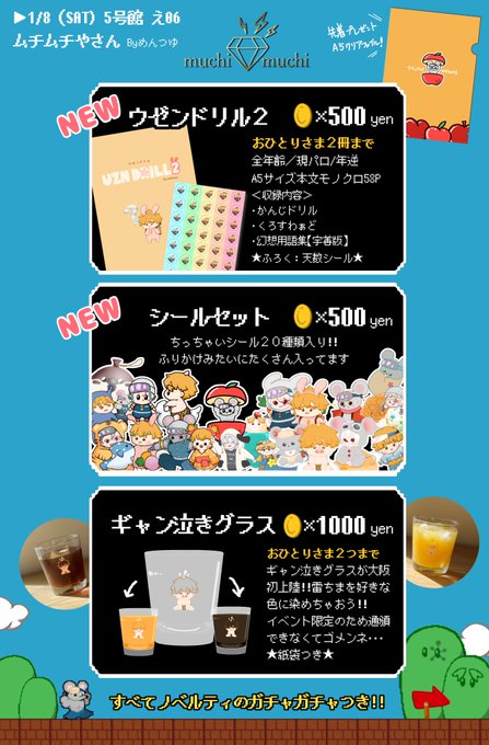 1/8おしながき 再アップすみません💦 新刊おもろいブック、各種ムチムチ揃えておりますのでぜひ遊びにいらしてください🥳お取り置きは本日12/24まで受付中です!よろしくお願いします triokini.com/circle/item/li… #宇善イベント_サークル参加します