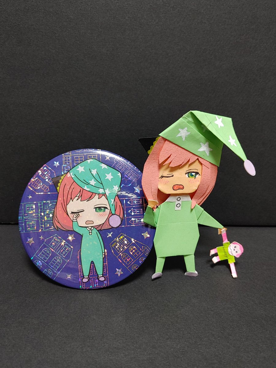 昨夜のまらしぃさんの配信後🍵🍵🍵の時の写真は、お気に入りのアーニャの缶バッジ☺️💗を見て折ってみました😊💕 先日のアニメのワンシーン🐶👧💤 寝顔可愛いなぁ😳イヤサレル💕 インクぶちた雑なイラストですが😳ww😂😂😂 #スパイファミリー #折り紙 #イラスト