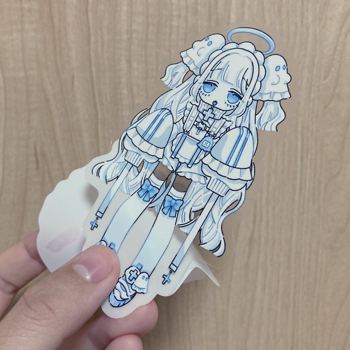 ステッカーきました👻 おばけなのであんよが透けてる! 貼ってもいいし、スマホに挟んでもいい感じのサイズ感☺️