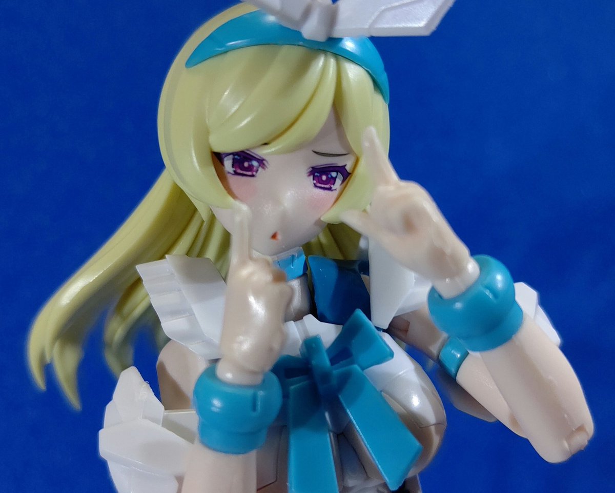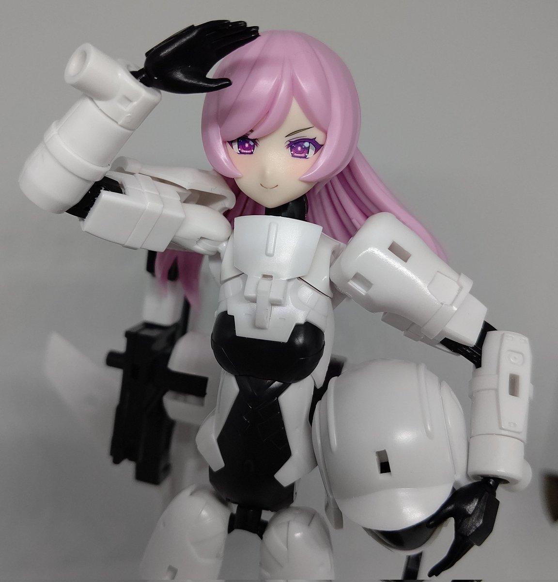 スパロボF女主人公ミーナ・ライクリングの髪型再現を頑張ってみました。 後頭部の髪の作りの資料が無くて、とりあえず丸く纏めてみました。 ボディカラーも塗装したいけれど、品薄なボディパーツが他と共用出来なくなるのは辛いので… 手足は御模道の白虎から拝借しました #30MSの波に乗れ #30MS