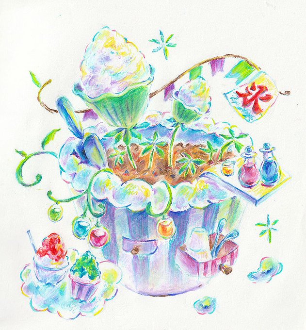かき氷の花だん #色鉛筆 #イラスト #イラスト好きな人と繋がりたい
