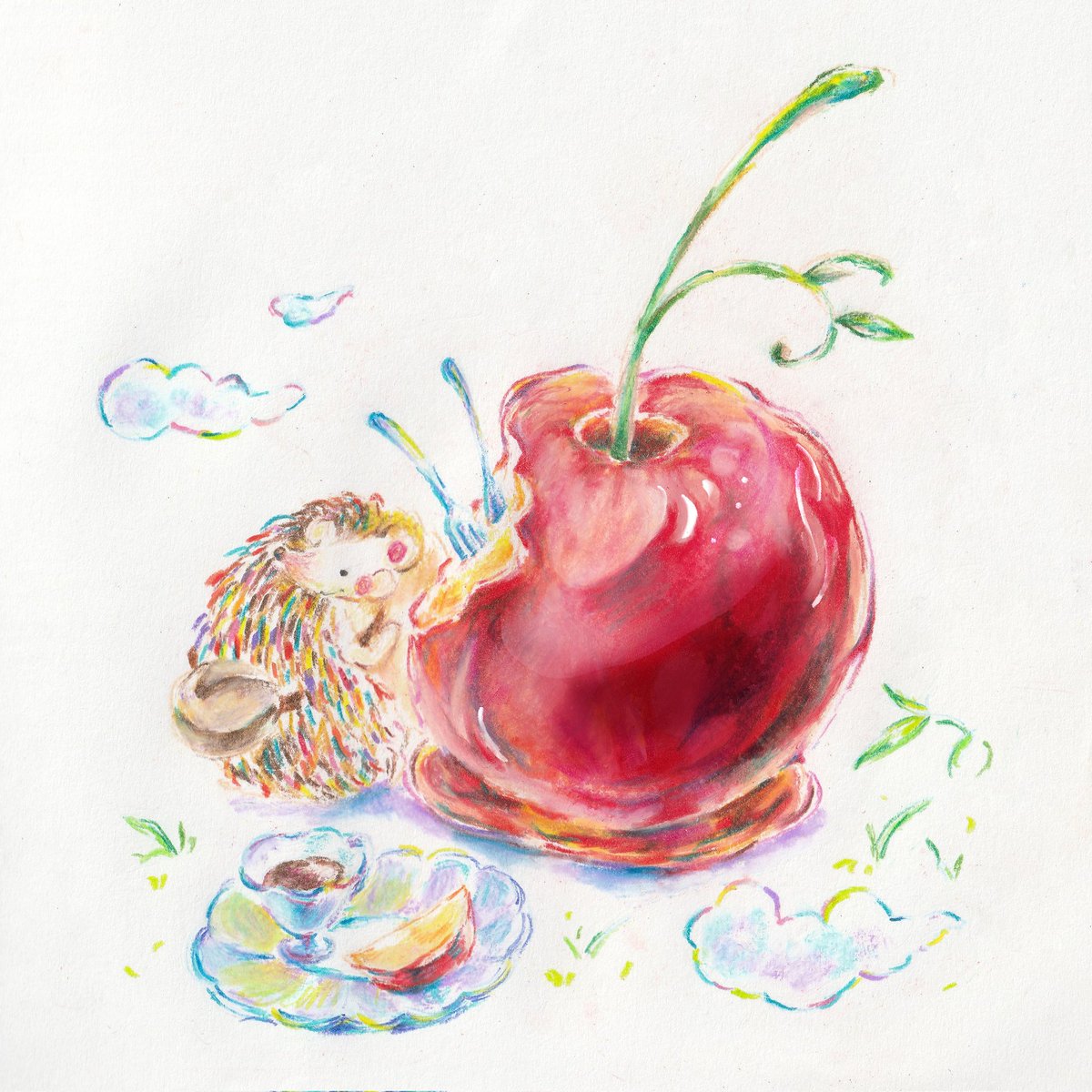 りんご飴は切って食べると 良いそうですね 今までかじって食べてました #イラスト #アナログイラスト #イラスト好きな人とつながりたい