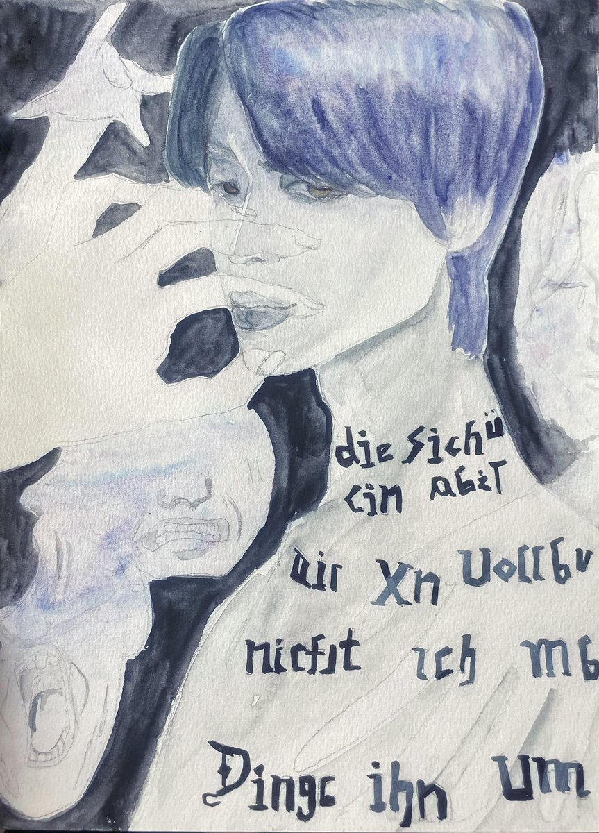 FAKELOVEのこの衣装 めちゃくちゃ好きなんですよ、、 いつもより丸くて柔らかでありながらミステリアスで儚げで、襟足長い×ハーネスVさん=最高にエモい。 #btsfunart #btsfanart #BTSV