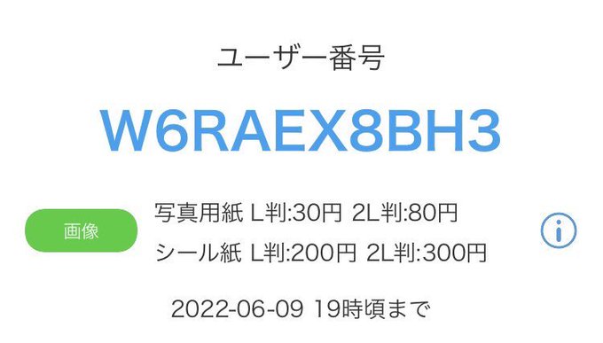 183 507 【ネットプリント】 有効期限 : 8/27 15時頃まで ユーザー番号 : AFEHE79Z4H L判:30円/枚 2L判:80円/枚 ローソン、ファミリーマートで印刷可 ※4枚目は前回のものと同じです 22/08/19 19:18