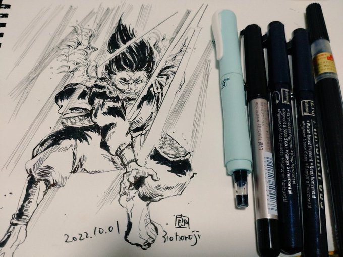 がんばらないインクトーバー。 #inktober2022 #inktober2022day1 ガーゴイルの定義を調べたら、怪物の彫刻の雨樋で、水や悪いものを吐き出して魔除けの意味もあるって出てきて、なるほど完璧に理解した!って描く前は思った…描く前は…