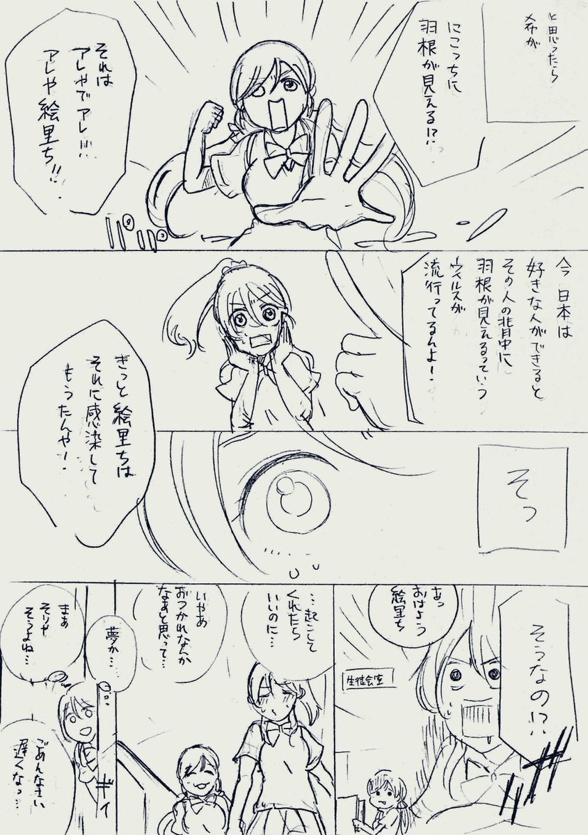 大昔に描いた、矢澤さんに羽根が見える絢瀬さんのにこえり。 確か見切り発車で描いたのでオチが全くわからんですが、落ち着いたら続き描きたいなぁ。
