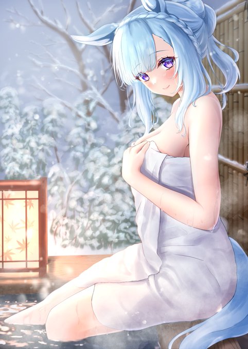 「雪を眺めながら入る温泉も良いものですね…」 #ウマ娘 #メジロアルダン